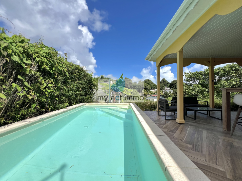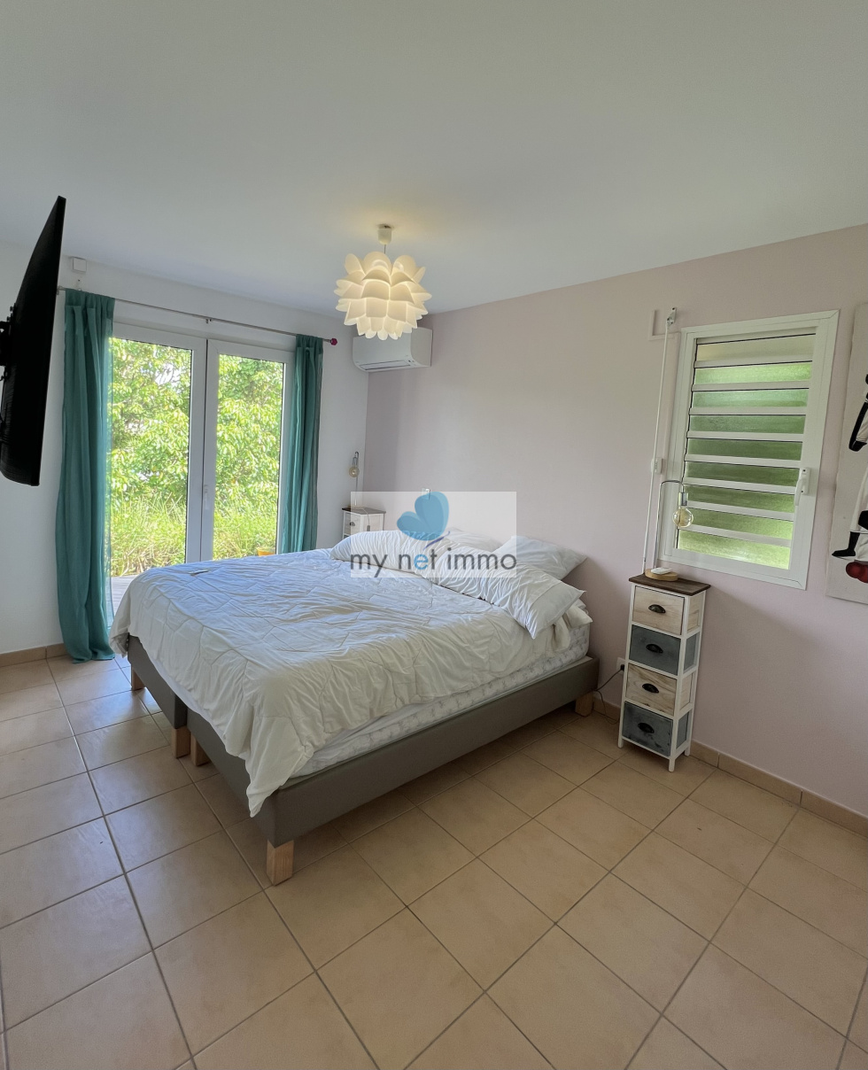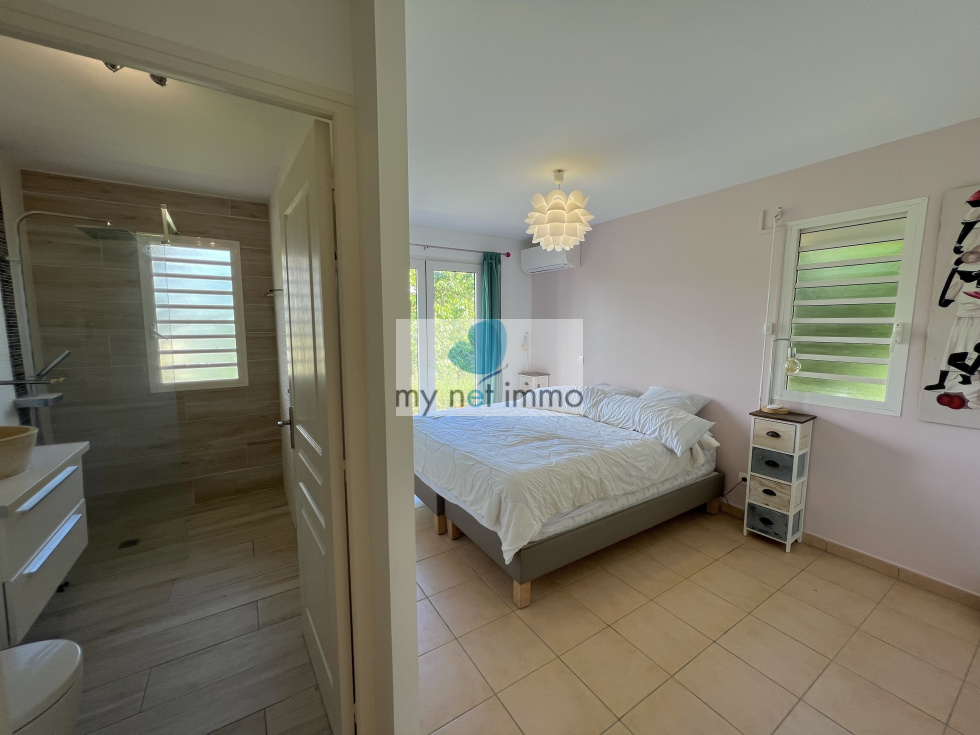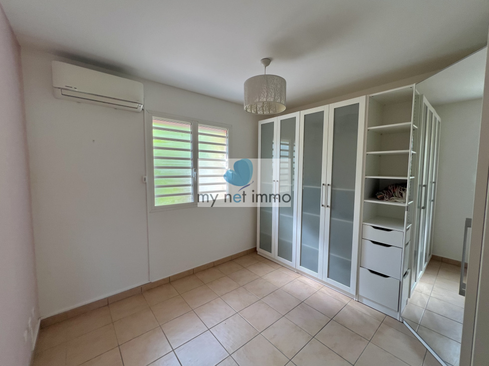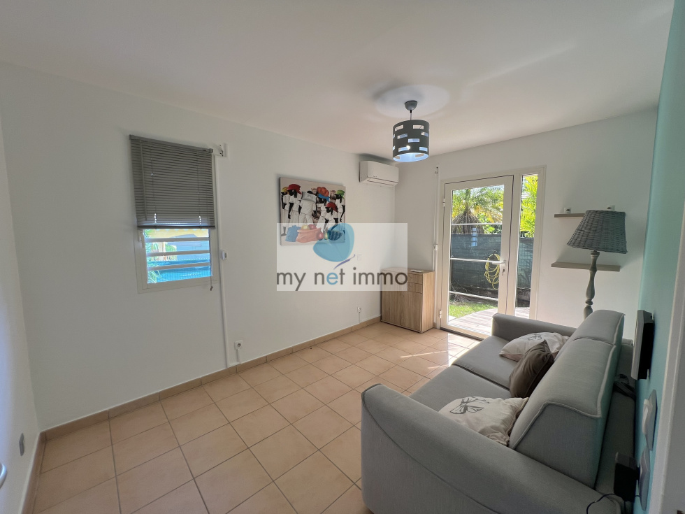 Jolie villa T4 meublée de plain-pied située au fond d’une impasse, sur la commune de Petit Bourg à deux minutes du centre-ville. La villa meublée avec goût, dispose d’un salon/séjour très lumineux donnant sur une terrasse en L avec une vue dégagée et une piscine pour pouvoir se rafraichir, une cuisine très fonctionnelle et entièrement équipée avec cellier attenant, une salle d’eau avec wc, une 1ère chambre d'enfant ou bureau avec un grand dressing et un canapé lit, une seconde chambre avec une porte fenêtre donnant sur l’extérieur et une suite parentale avec dressing et salle d’eau donnant sur la terrasse. Le terrain est entièrement clôturé, la villa dispose d’une citerne. L’entretien de la piscine et du jardin est compris dans le loyer. Eau et électricité à la charge des locataires. Pour plus d'informations, contactez My Net Immo au 0590 200 800
