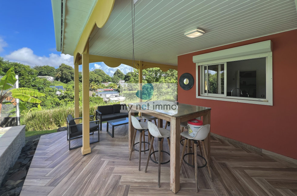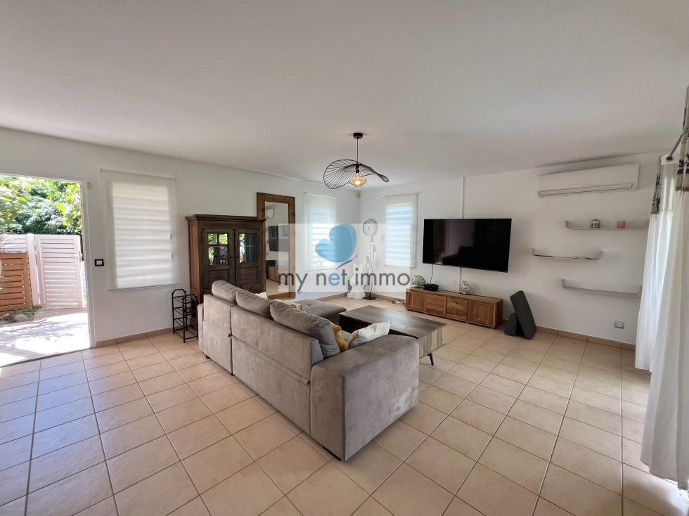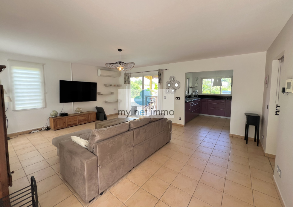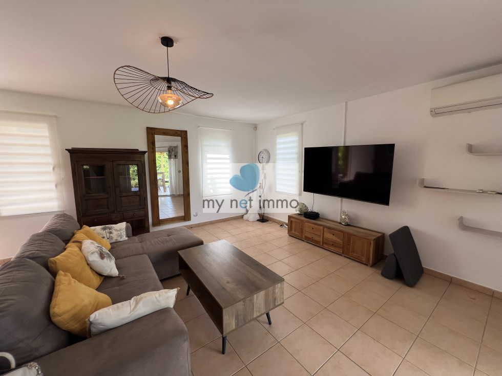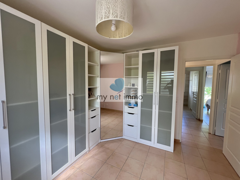 Jolie villa T4 meublée de plain-pied située au fond d’une impasse, sur la commune de Petit Bourg à deux minutes du centre-ville. La villa meublée avec goût, dispose d’un salon/séjour très lumineux donnant sur une terrasse en L avec une vue dégagée et une piscine pour pouvoir se rafraichir, une cuisine très fonctionnelle et entièrement équipée avec cellier attenant, une salle d’eau avec wc, une 1ère chambre d'enfant ou bureau avec un grand dressing et un canapé lit, une seconde chambre avec une porte fenêtre donnant sur l’extérieur et une suite parentale avec dressing et salle d’eau donnant sur la terrasse. Le terrain est entièrement clôturé, la villa dispose d’une citerne. L’entretien de la piscine et du jardin est compris dans le loyer. Eau et électricité à la charge des locataires. Pour plus d'informations, contactez My Net Immo au 0590 200 800