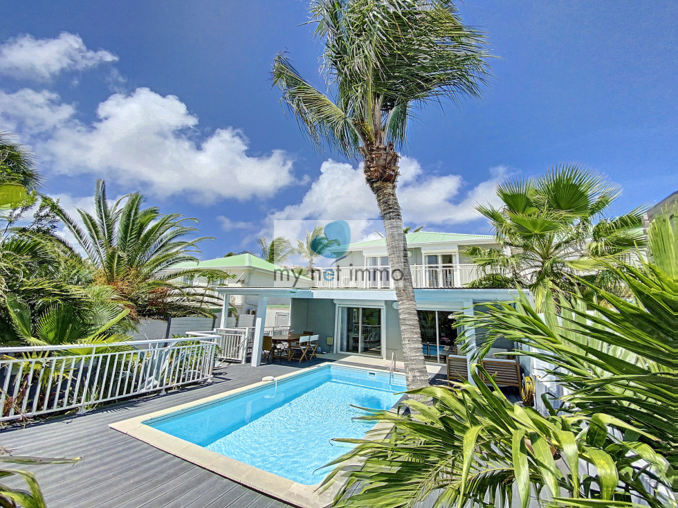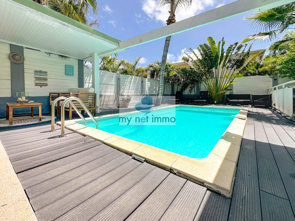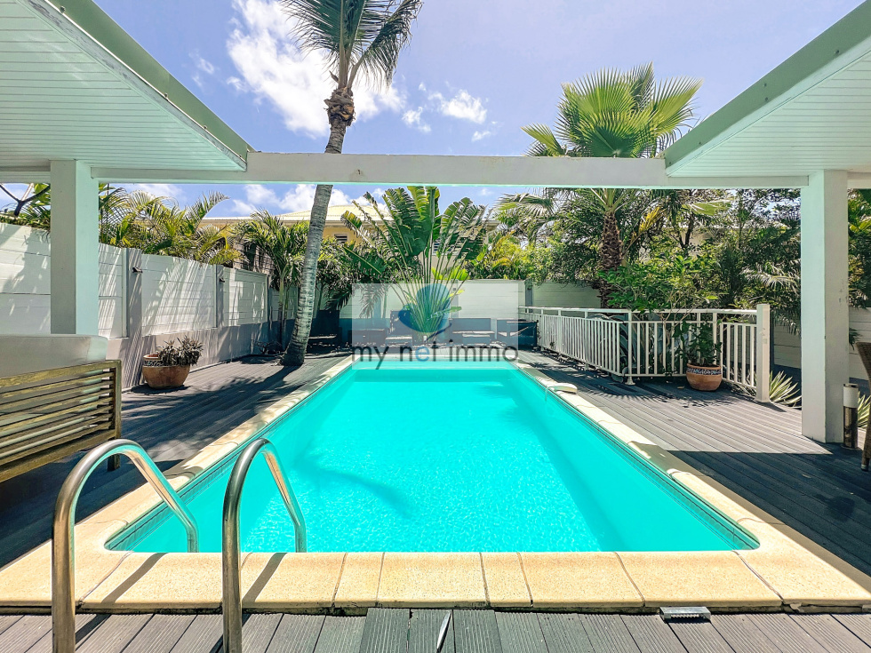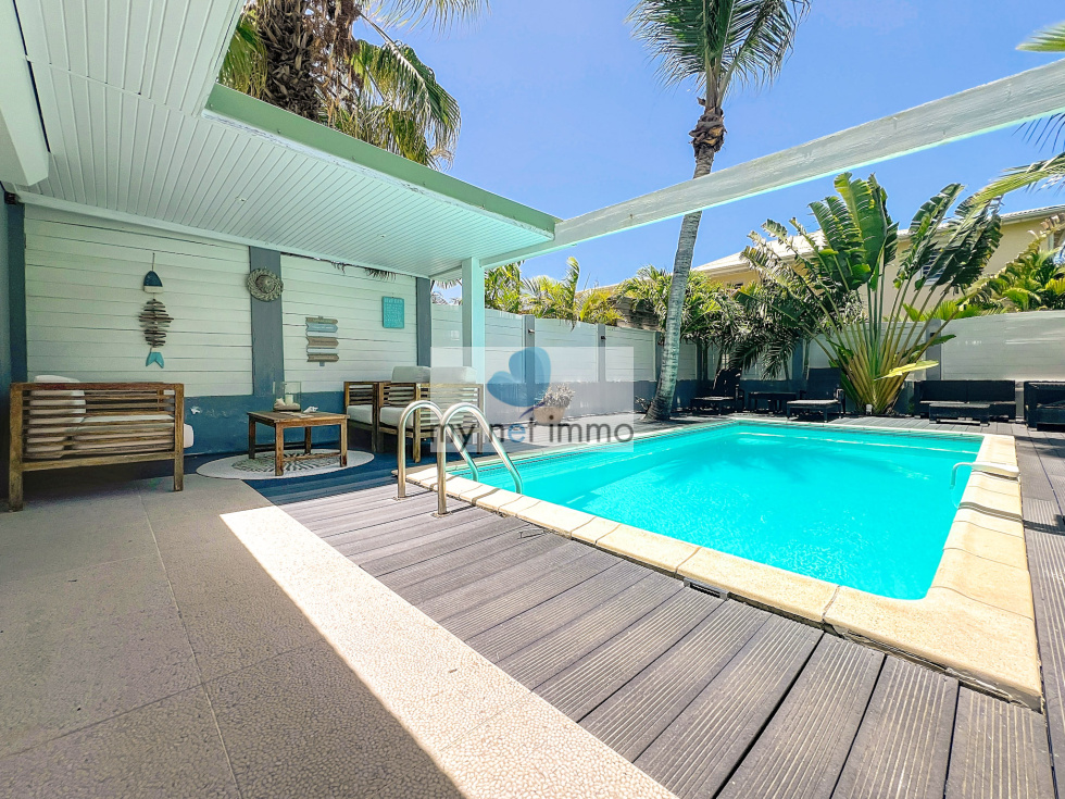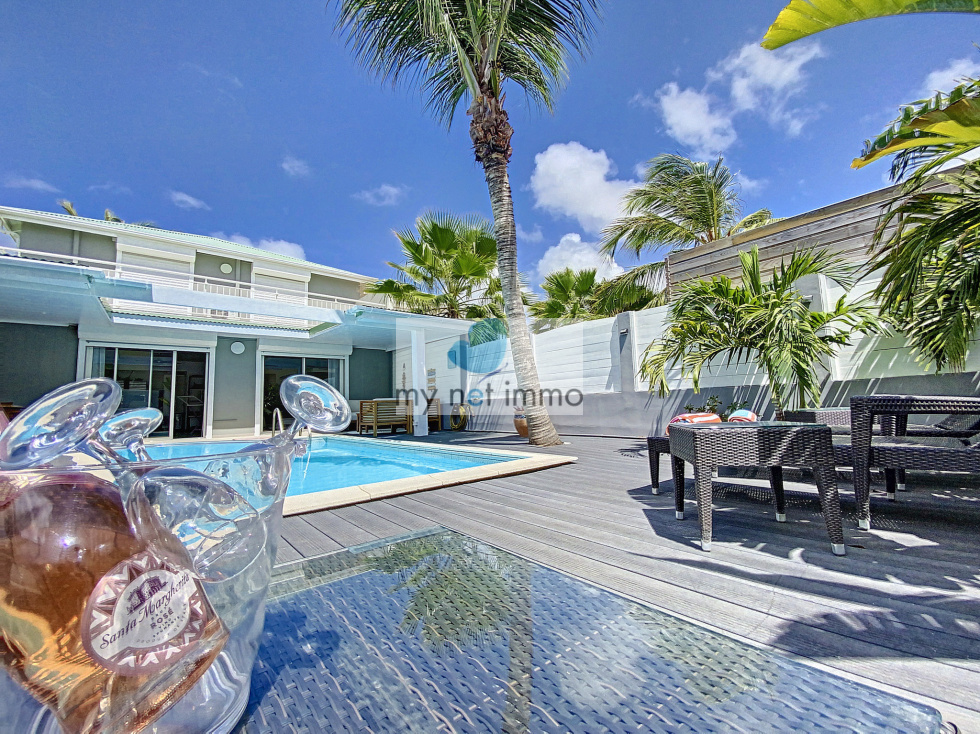 Vous tomberez sous le charme de cette jolie maison mitoyenne située dans le quartier très prisé d'Orient Baie, c'est un véritable havre de paix. L'entrée avec placards de rangements dessert une chambre avec salle de bains, la vaste pièce principale aux couleurs clairs et décorée avec soin, est ouverte sur les terrasses extérieures. Sur le côté du salon se trouve la cuisine entièrement équipée, double frigo, plaques induction, four, lave vaisselle, de nombreux rangements et un cellier. A l'étage, 2 chambres et leurs salles de bains respectives, placards, terrasses. Climatisation. Les 2 terrasses sont couvertes et très confortables, piscine 4x6, jardinet, citerne hors sol, citerne de 8m2 à raccorder, Volets roulants électriques, bais vitrées, Fibre, 2 places de parking, Taxe foncière 2500€/an, Charges copro 250 euros/mois. Boite a clefs. Louée en airbnb 260 euros / nuit basse saison , fêtes 550 euros / nuit Contact: Isabelle Merli +590690287550 ( whatsapp)
