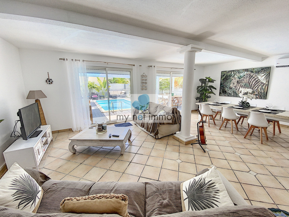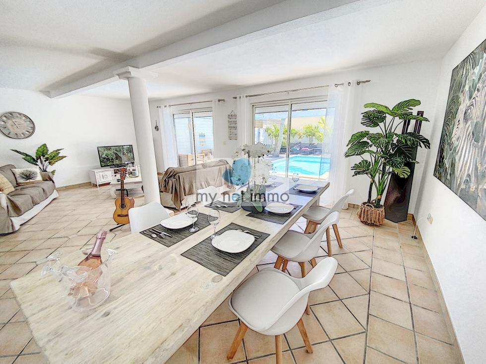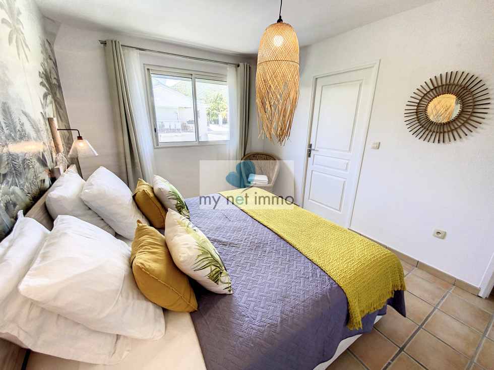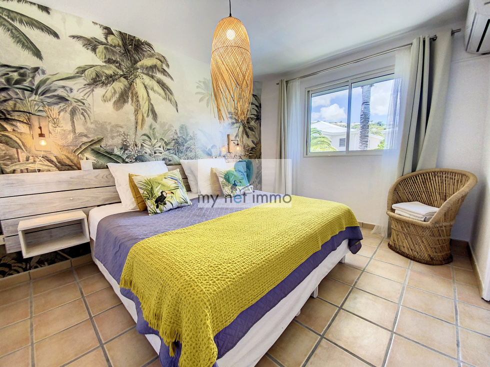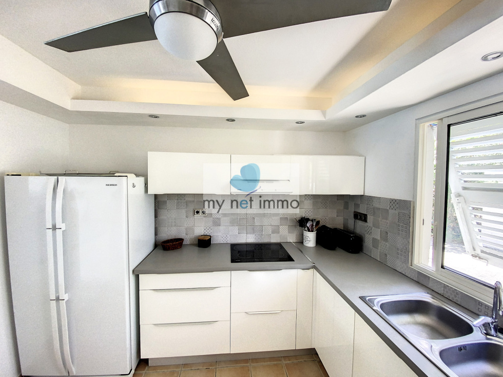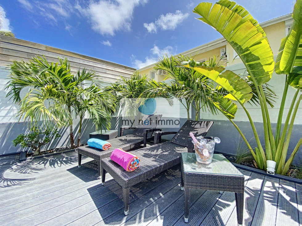 Vous tomberez sous le charme de cette jolie maison mitoyenne située dans le quartier très prisé d'Orient Baie, c'est un véritable havre de paix. L'entrée avec placards de rangements dessert une chambre avec salle de bains, la vaste pièce principale aux couleurs clairs et décorée avec soin, est ouverte sur les terrasses extérieures. Sur le côté du salon se trouve la cuisine entièrement équipée, double frigo, plaques induction, four, lave vaisselle, de nombreux rangements et un cellier. A l'étage, 2 chambres et leurs salles de bains respectives, placards, terrasses. Climatisation. Les 2 terrasses sont couvertes et très confortables, piscine 4x6, jardinet, citerne hors sol, citerne de 8m2 à raccorder, Volets roulants électriques, bais vitrées, Fibre, 2 places de parking, Taxe foncière 2500€/an, Charges copro 250 euros/mois. Boite a clefs. Louée en airbnb 260 euros / nuit basse saison , fêtes 550 euros / nuit Contact: Isabelle Merli +590690287550 ( whatsapp)