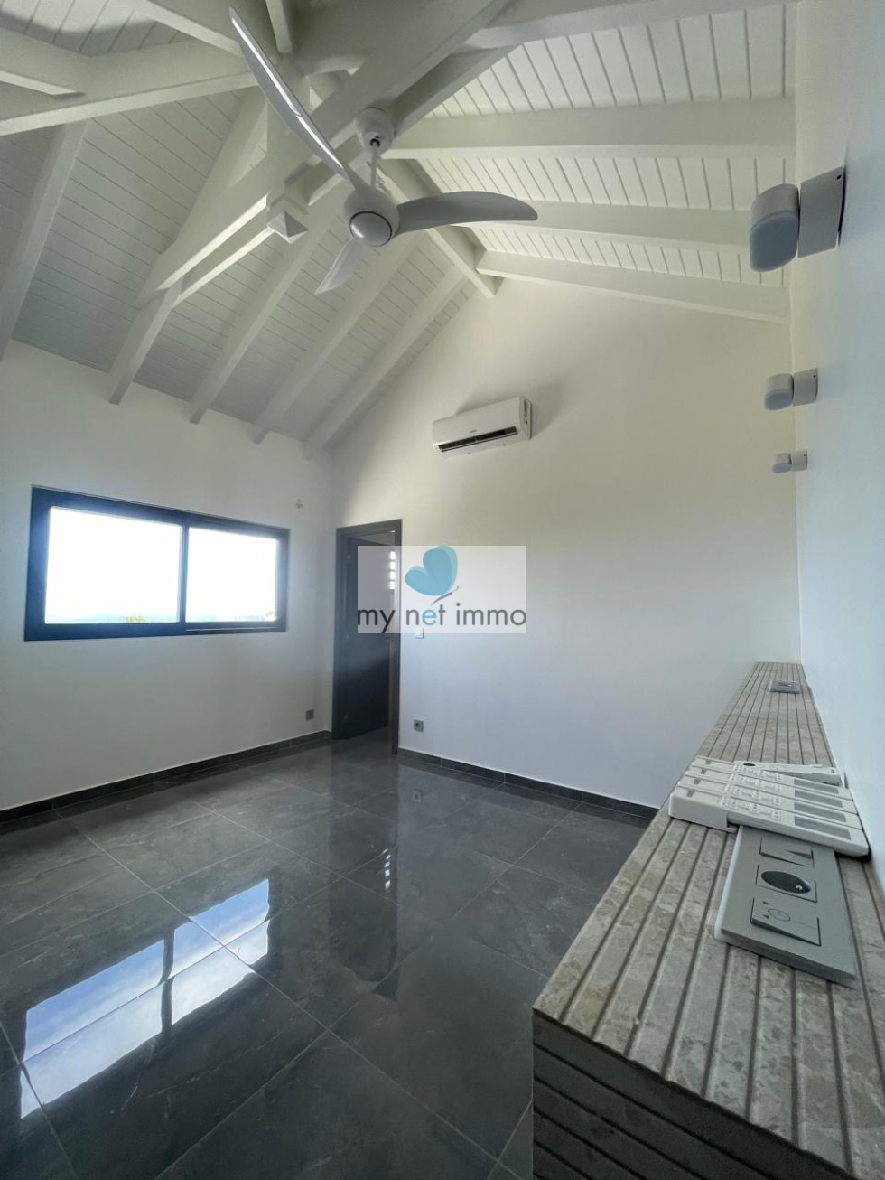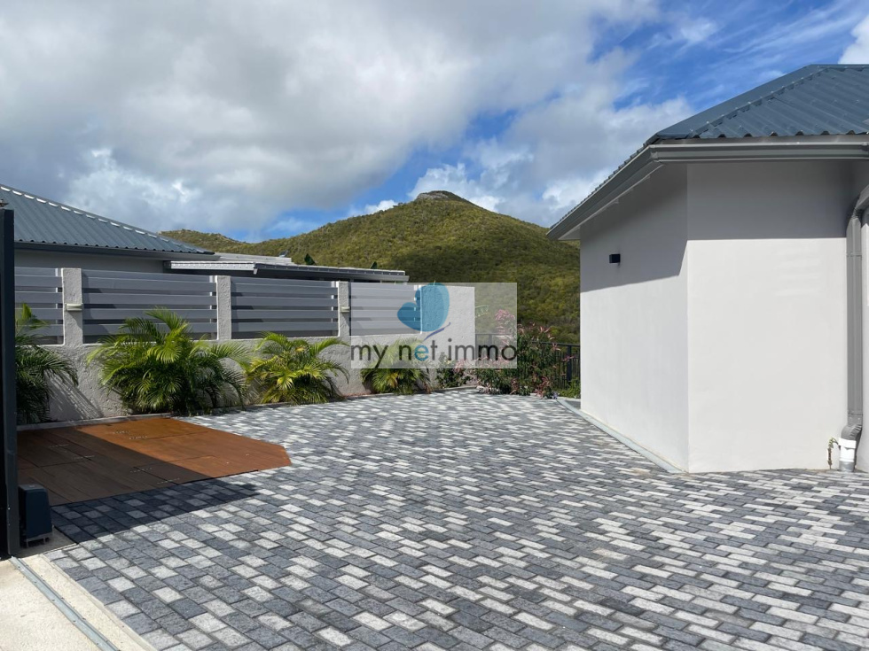 Coup de coeur pour cette villa neuve situee dans la residence securisee de Hope Hill, au dessus de la Baie Orientale, elle se compose de 4 chambres, 3 sdb, large salon de 50m2 , plafond cathedrale, baies vitrees donnant sur la terrasse exterieure couverte de 30m2, cuisine equipee, piscine, deck de 16m2 Cette propriete est entierement cloturee et l acces est motorise et securise, vous disposez d un jardin de 36m2 et un garage couvert et ferme de 40m2, une citerne de 60m3 , une fosse sceptique a coco, nouvelle generation. Cette villa a ete construite avec des materiaux de qualite et est de tres bonne facture, prete a etre habitee ou louee Petite copropriete de deux lots, tres faible charges. Contact: isabelle Merli +590690287550 whatsapp ou isasxm2@gmail.com