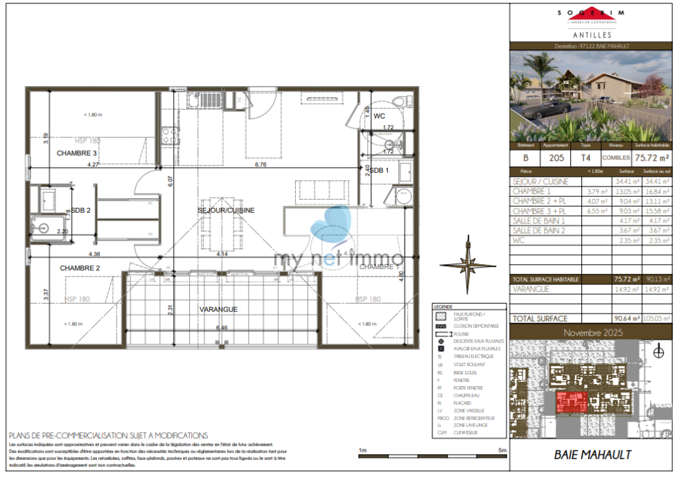 La résidence Bel Canto naitra à Baie Mahault sur un emplacement de plus de 7 000 m², entourée d’un grand espace végétal. Ce projet comprend trois immeubles de 17 à 23 appartements chacun, dont le bâtiment B qui sera livré en 2028. Le bâtiment B propose 25 appartements, du 2 pièces au 4 pièces, sur 3 niveaux du rez de jardin avec jardinet privatif et clôturé, au 2ème étage (avec ascenseur) : chaque lot est vendu avec sa place de parking attitrée, et tous les appartements sont PMR (accessibles aux personnes à mobilité réduite).Tous les appartements offrent des prestations de standing : volets roulants motorisés, eau chaude solaire individuelle, menuiseries aluminium, salles d’eau modernes, placards aménagés (selon plan), portes palières 3 points, vidéophone, faiences murales personnalisables, ascenceur. Livraison 2ème semestre 2028. Très bon investissement locatif dans un secteur très recherché. Appelez MY NET IMMO pour en savoir plus et réserver votre lot au 0590 200800. Les informations sur les risques auxquels ce bien est exposé sont disponibles sur le site Géorisques : www.georisques.gouv.fr