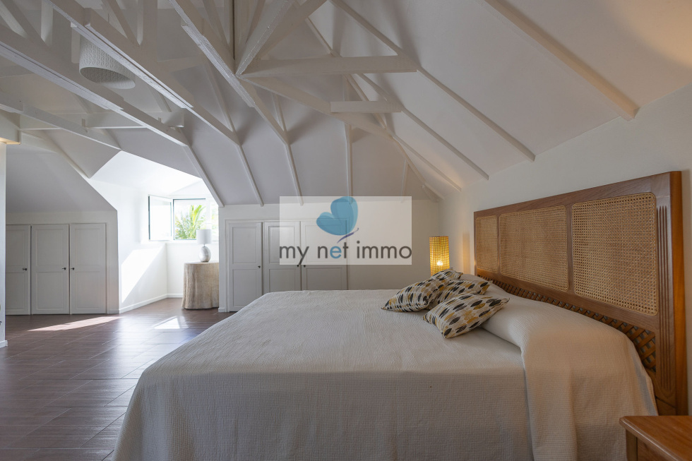 Entièrement rénovée avec soin, la propriété offre des prestations impeccables tout en conservant le charme de l’architecture créole : structure en béton, charpente bois apparente à l'étage et espaces largement ouverts sur l’extérieur.