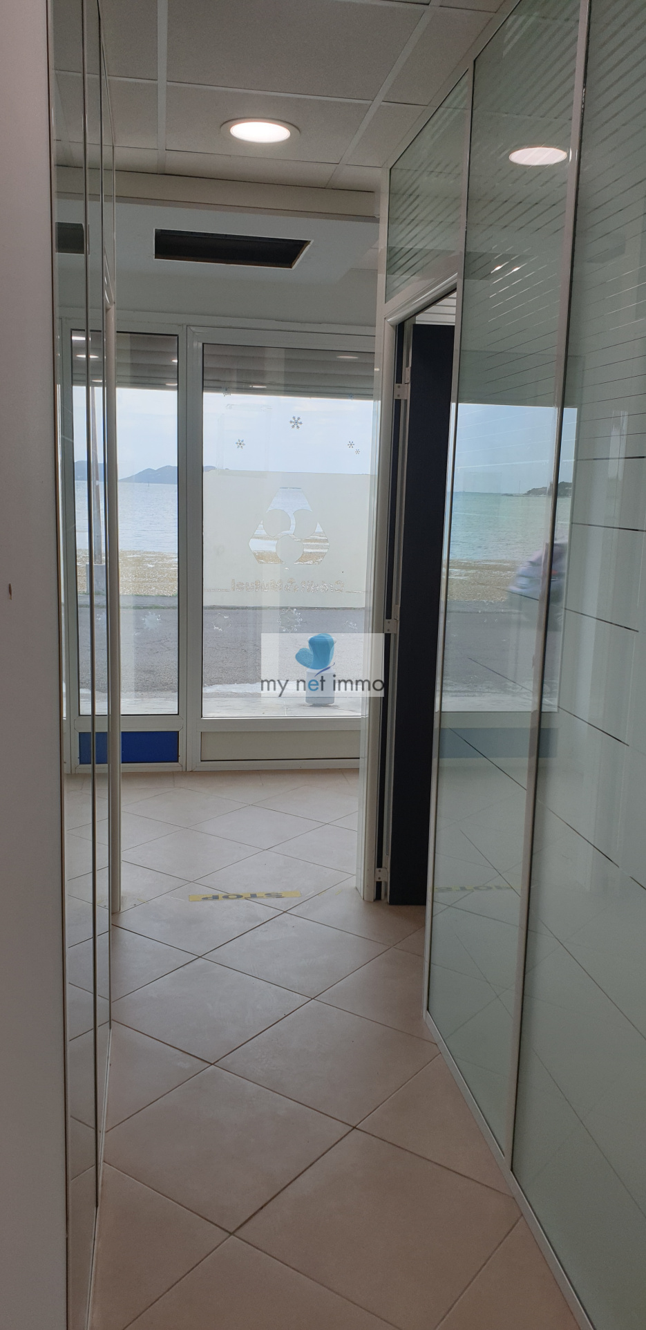 Très beau local commercial anciennement occupé par un établisement bancaire , comprenant : un accueil , 6 bureaux , une salle archives, un espace réfectoire, un wc. Volets métaliques électriques , alarme intérieure .Très bel emplacement de front de mer avec vue magnifique .
