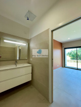 À l’extérieur, une piscine privée vient parfaire ce bien d’exception, en parfaite harmonie avec l’environnement naturel et les vues imprenables sur le golf et la mer.