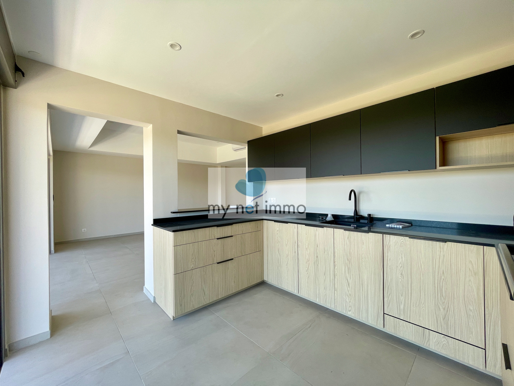 - un vaste séjour climatisé avec cuisine américaine élégamment ouverte,