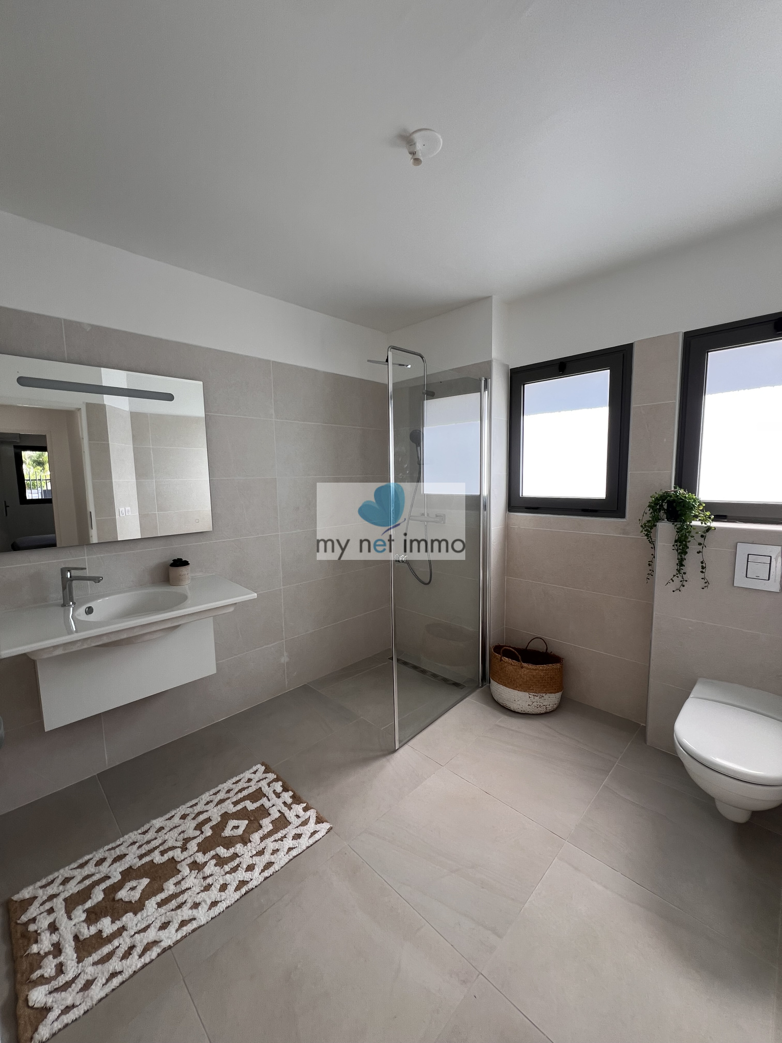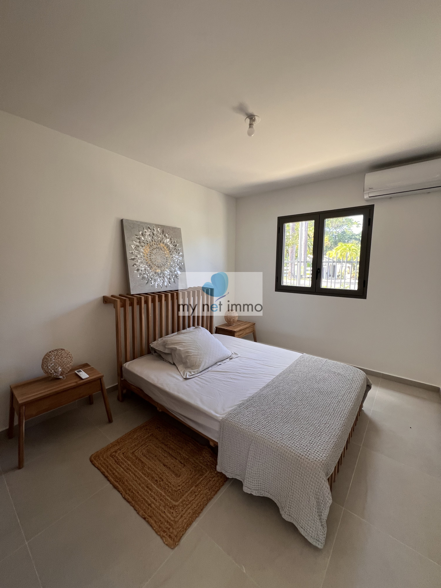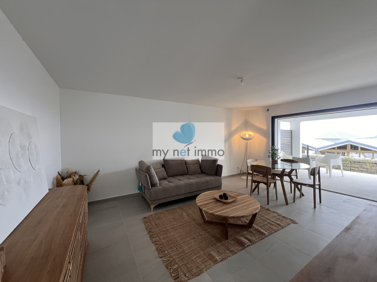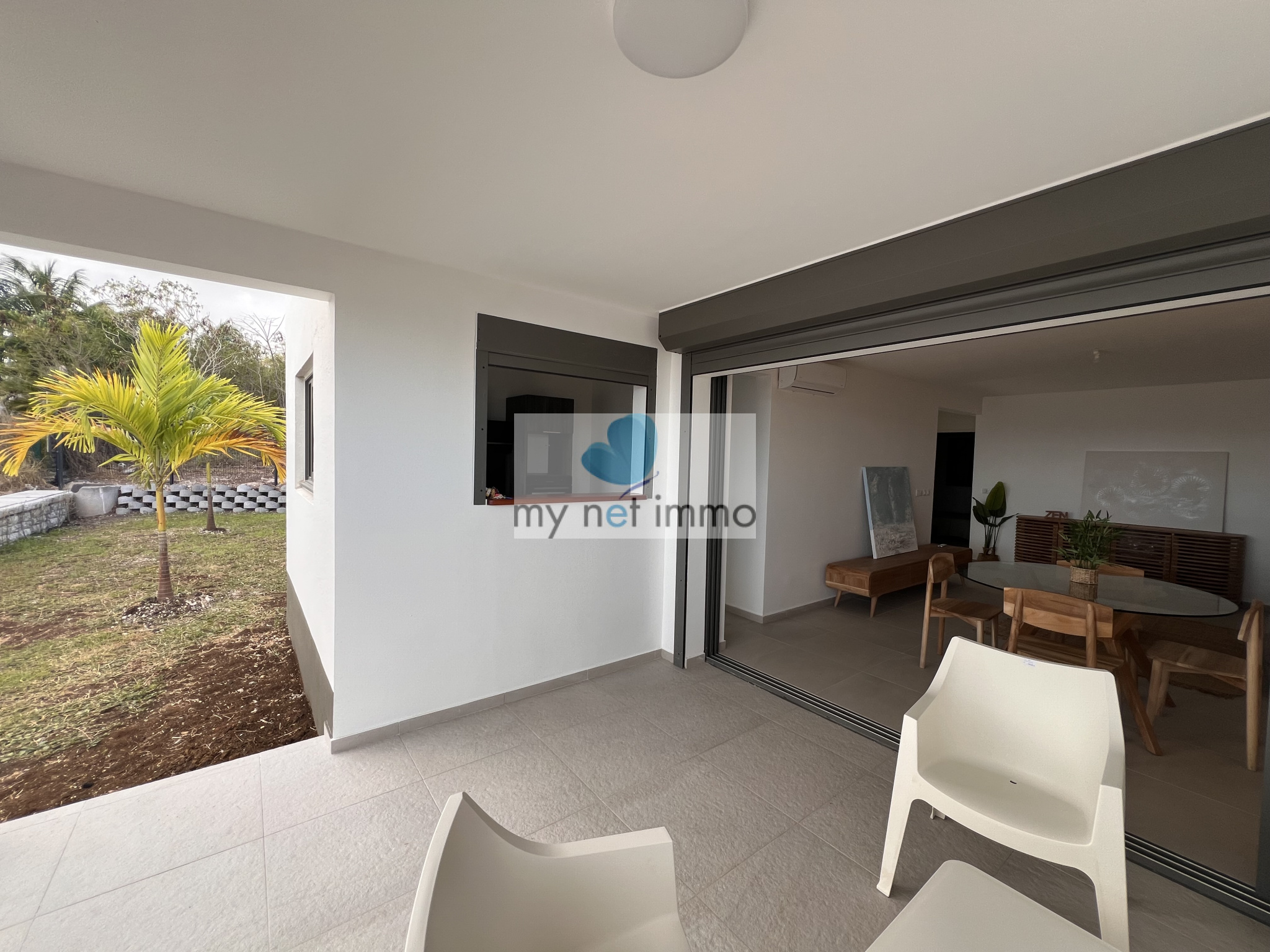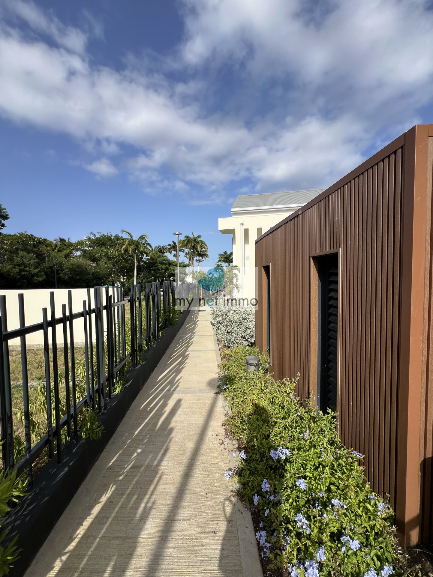 Magnifique appartement T3 de standing, situé dans les Hauts de Saint-François. Dans une résidence sécurisée de 16 appartements avec piscine commune, cet appartement dispose d'une entrée, d'une grande pièce principale de 22.82m2 climatisée avec une cuisine aménagée et semi équipée avec matériaux de qualité, de deux belles chambres climatisées avec dressing, de sa salle d'eau équipée d'une douche à l'italienne et de WC, ainsi que d'une terrasse de 15.06m². L'atout majeur de cet appartement est son vaste jardin de 156 m², offrant de nombreuses possibilités d'aménagement extérieur.