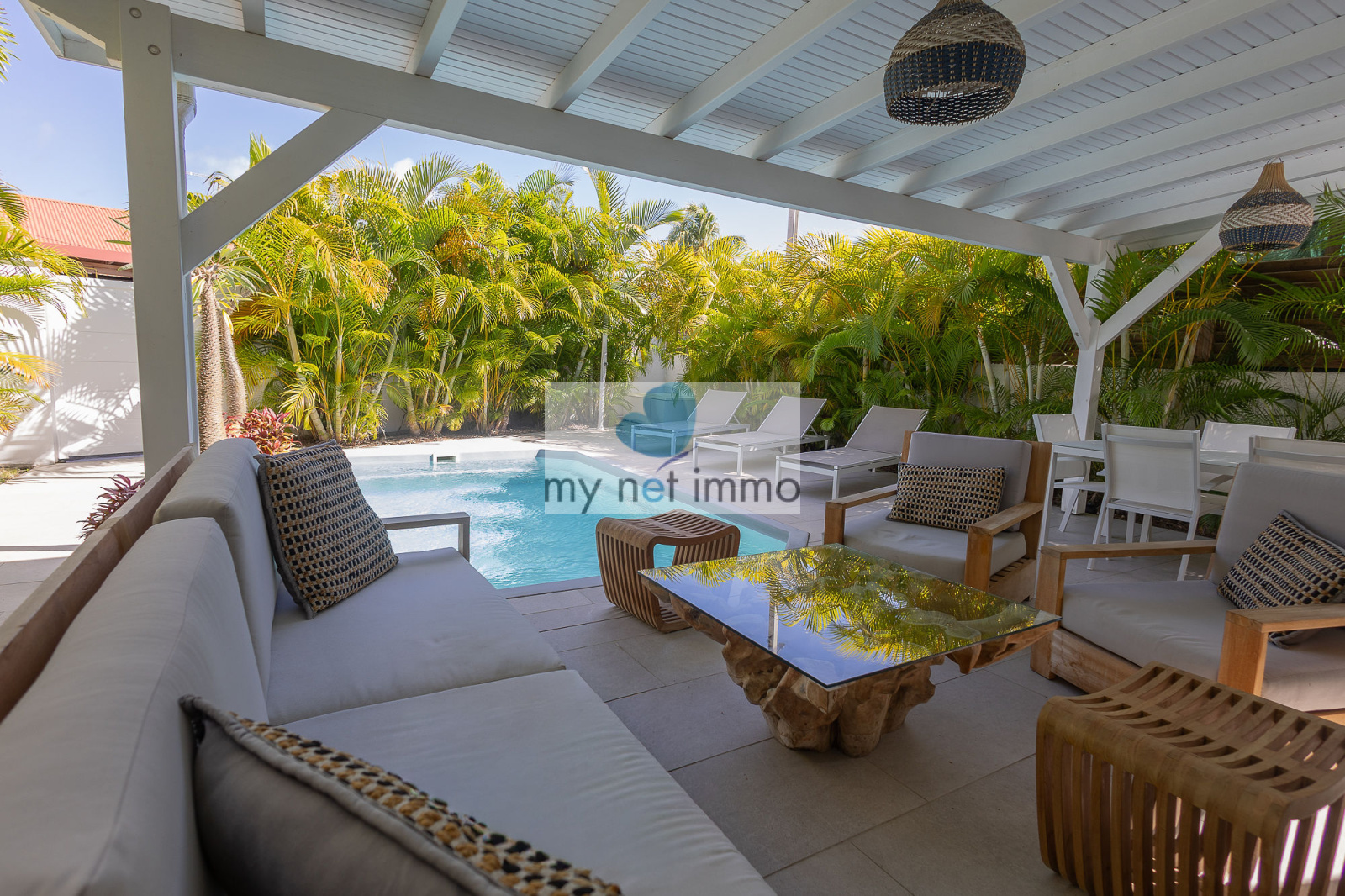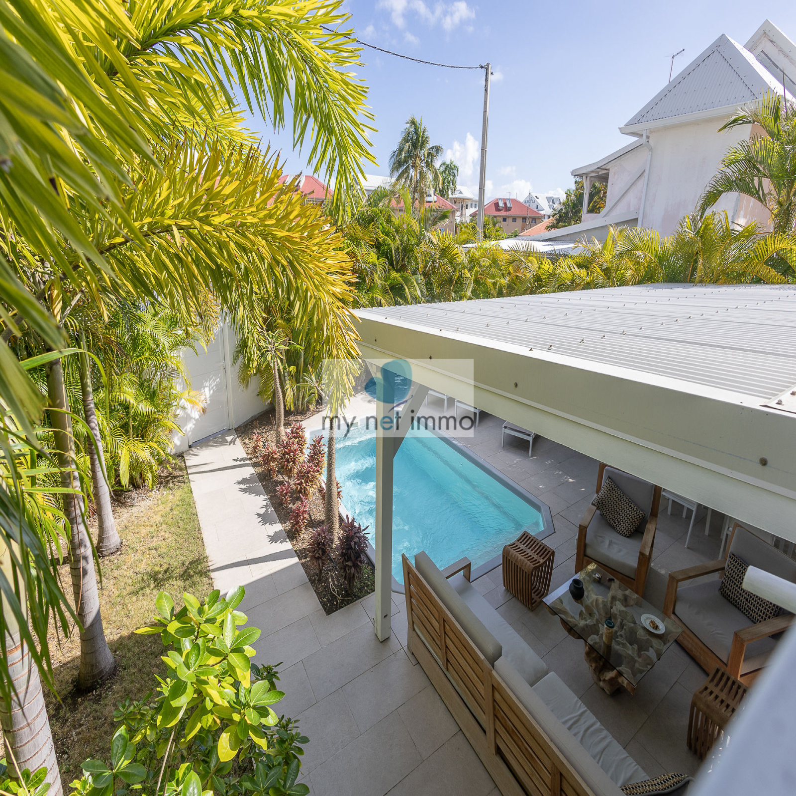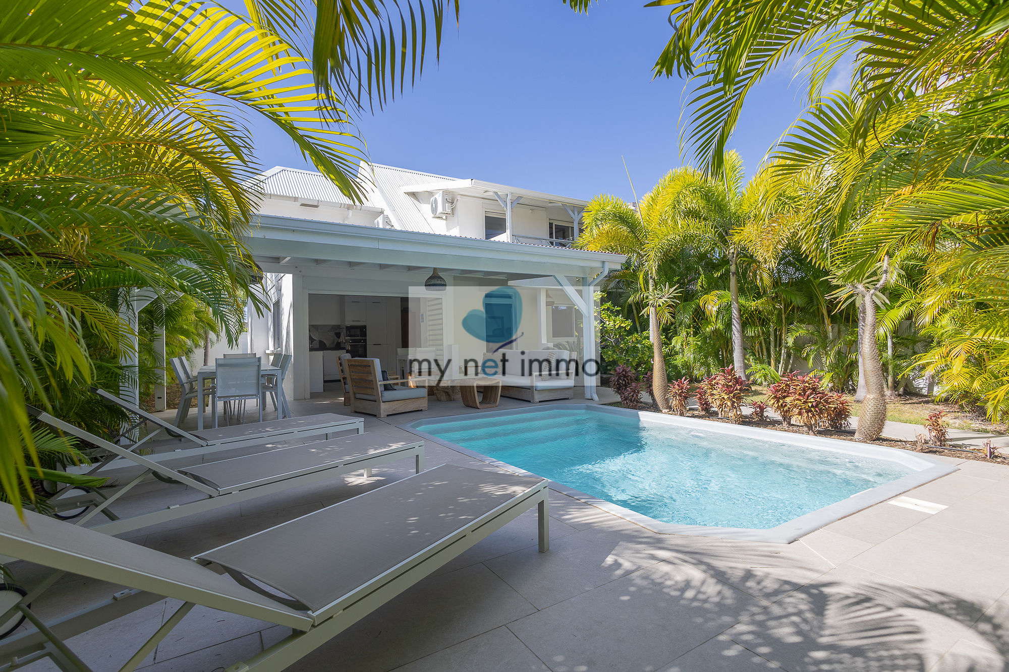 Idéalement située au centre de Saint-François, à proximité immédiate de la Marina, des commerces et des plages, cette villa entièrement rénovée offre un cadre de vie privilégié, tout à pied et au calme, sans vis-à-vis.