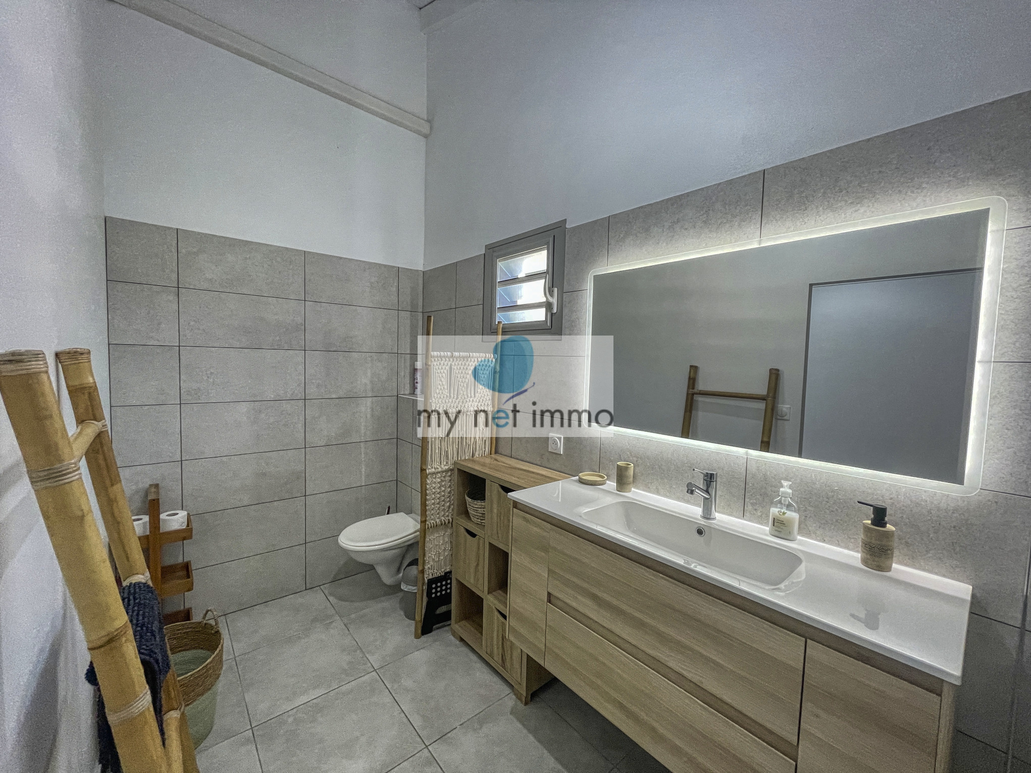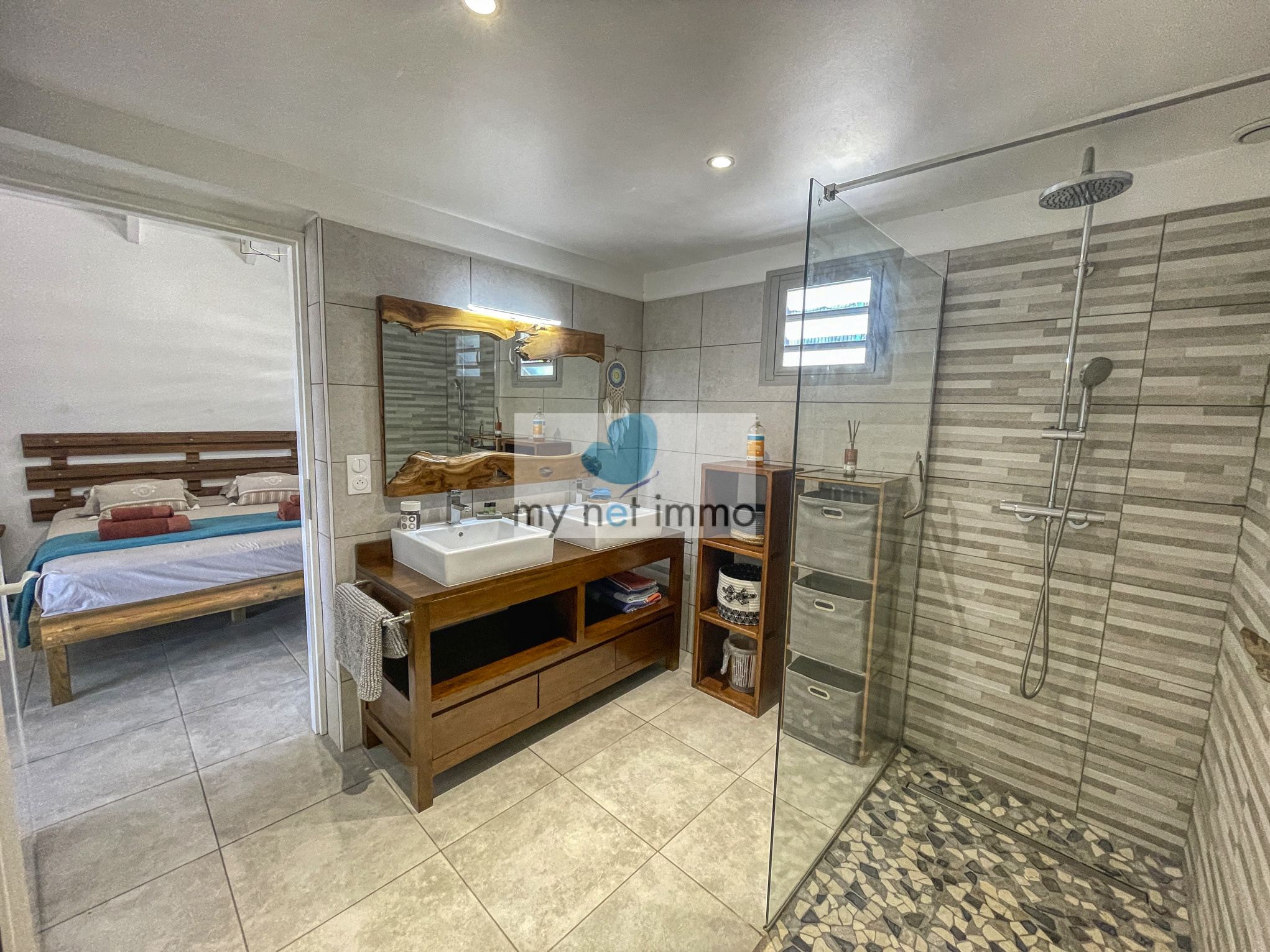 Le bungalow avec entrée indépendante de type T3 constitue un véritable atout. Idéal pour accueillir famille et amis ou conserver une activité locative tout en vivant dans la villa principale, il comprend deux chambres climatisées, deux salles d’eau, un WC invités et un salon avec cuisine ouvrant sur une terrasse intimiste entourée de végétation.