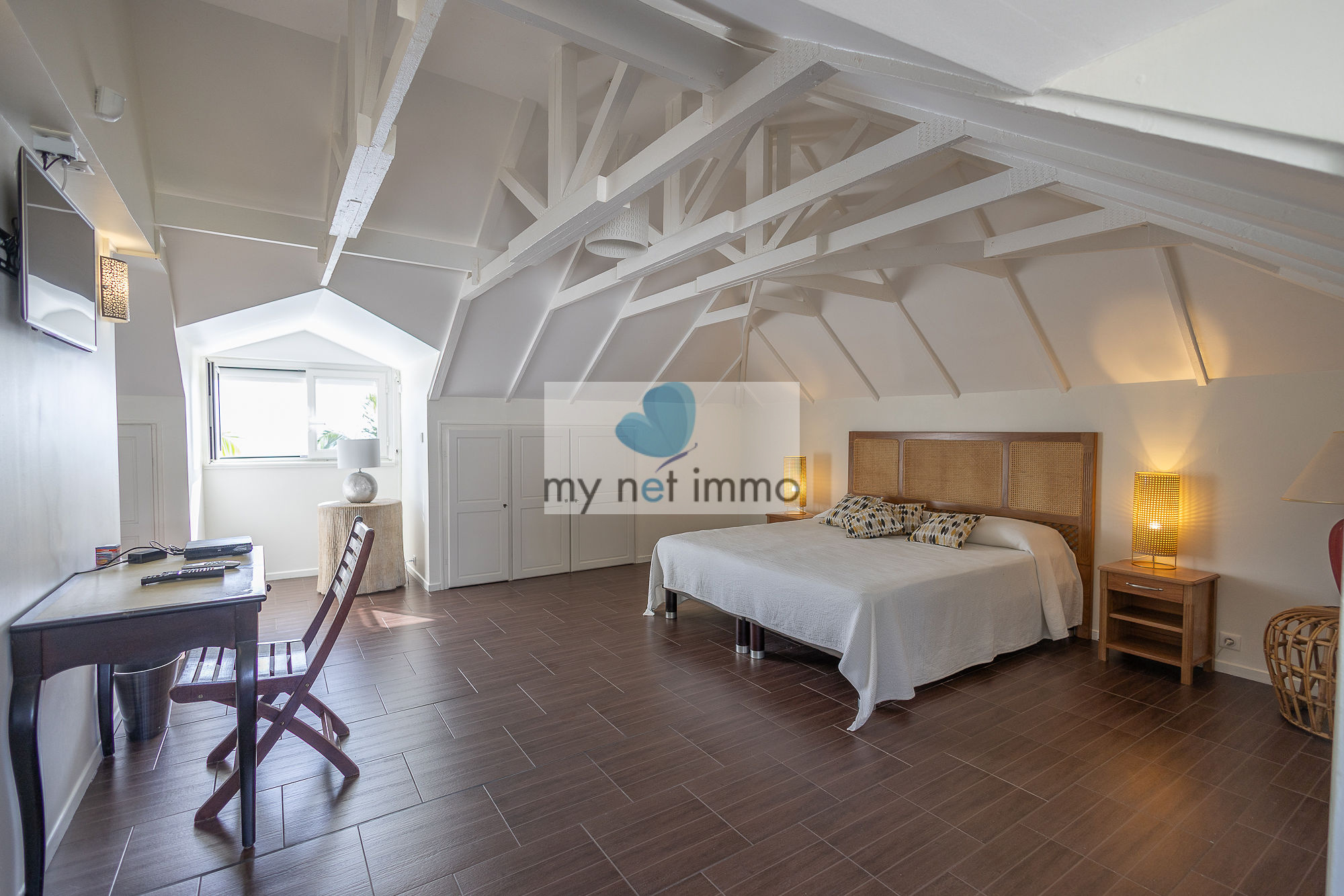 Entièrement rénovée avec soin, la propriété offre des prestations impeccables tout en conservant le charme de l’architecture créole : structure en béton, charpente bois apparente à l'étage et espaces largement ouverts sur l’extérieur.